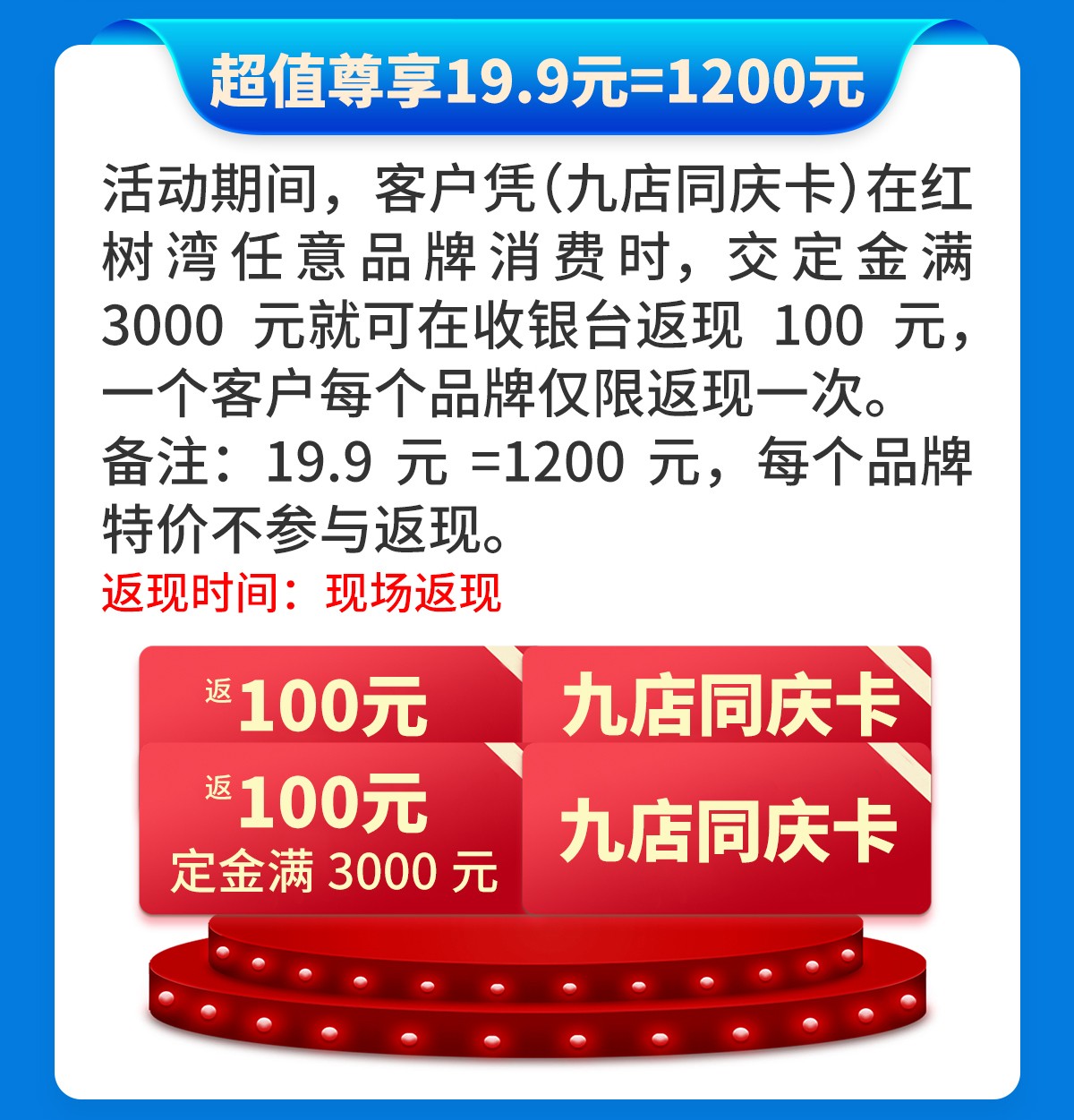 红树湾家具建材中心樟木头店【九店齐贺周年庆】大型促销活动!2000份大礼来就送、超值尊享19.9元=1200元、1000份礼品抢单送、下定建材+家私送豪礼、联购返现200万、2000份金蛋大奖任你砸、豪华电器全部抽出等,更多的活动优惠请报名亲临现场了解。