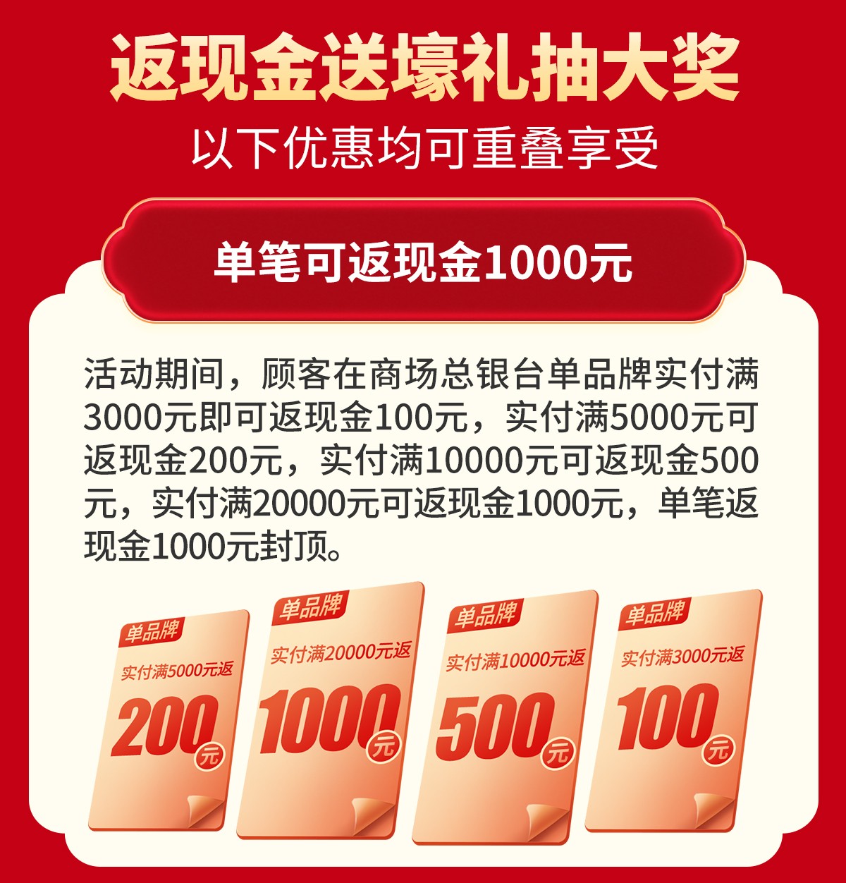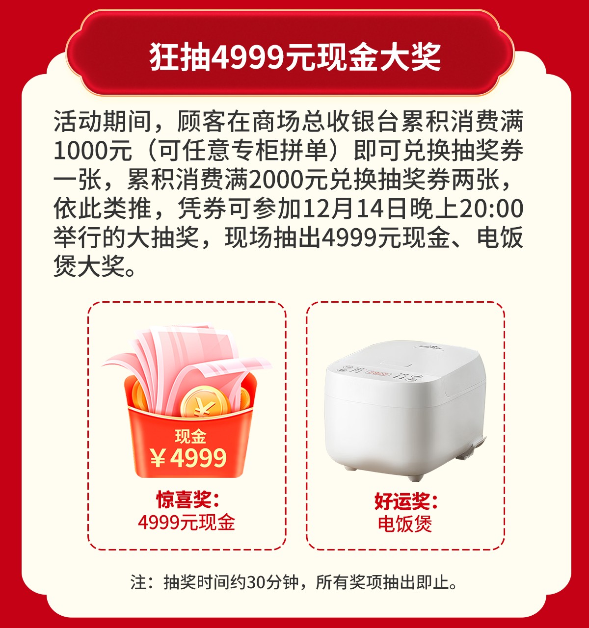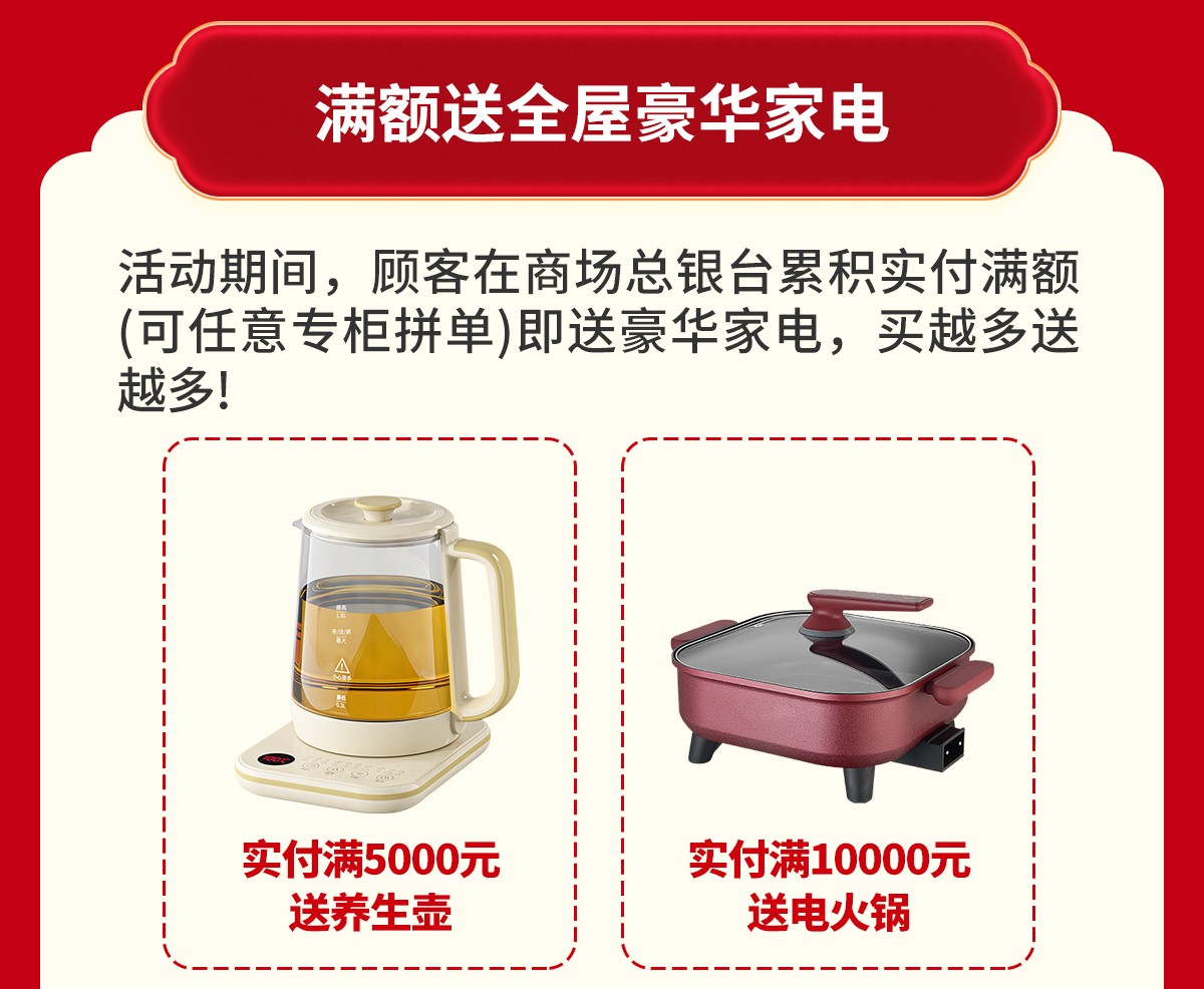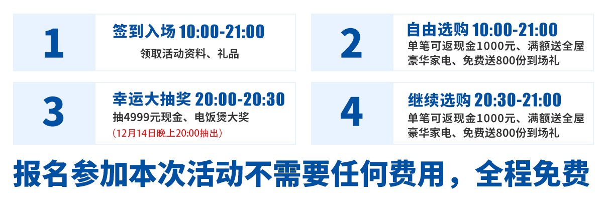 单笔可返现1000元,满额送全屋豪华家电,抽4999元现金大奖,派800份免费好礼,优惠尽在12月6-7/12-14日花都美泰家居广场20周年庆,请免费报名锁定优惠!