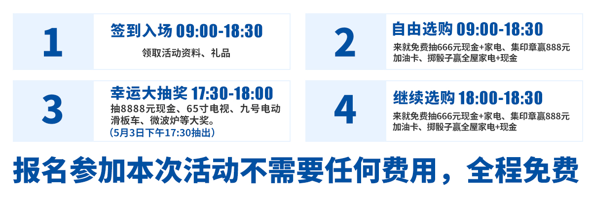 活动时间:5月1-3日(五一假期三天)09:00-18:30