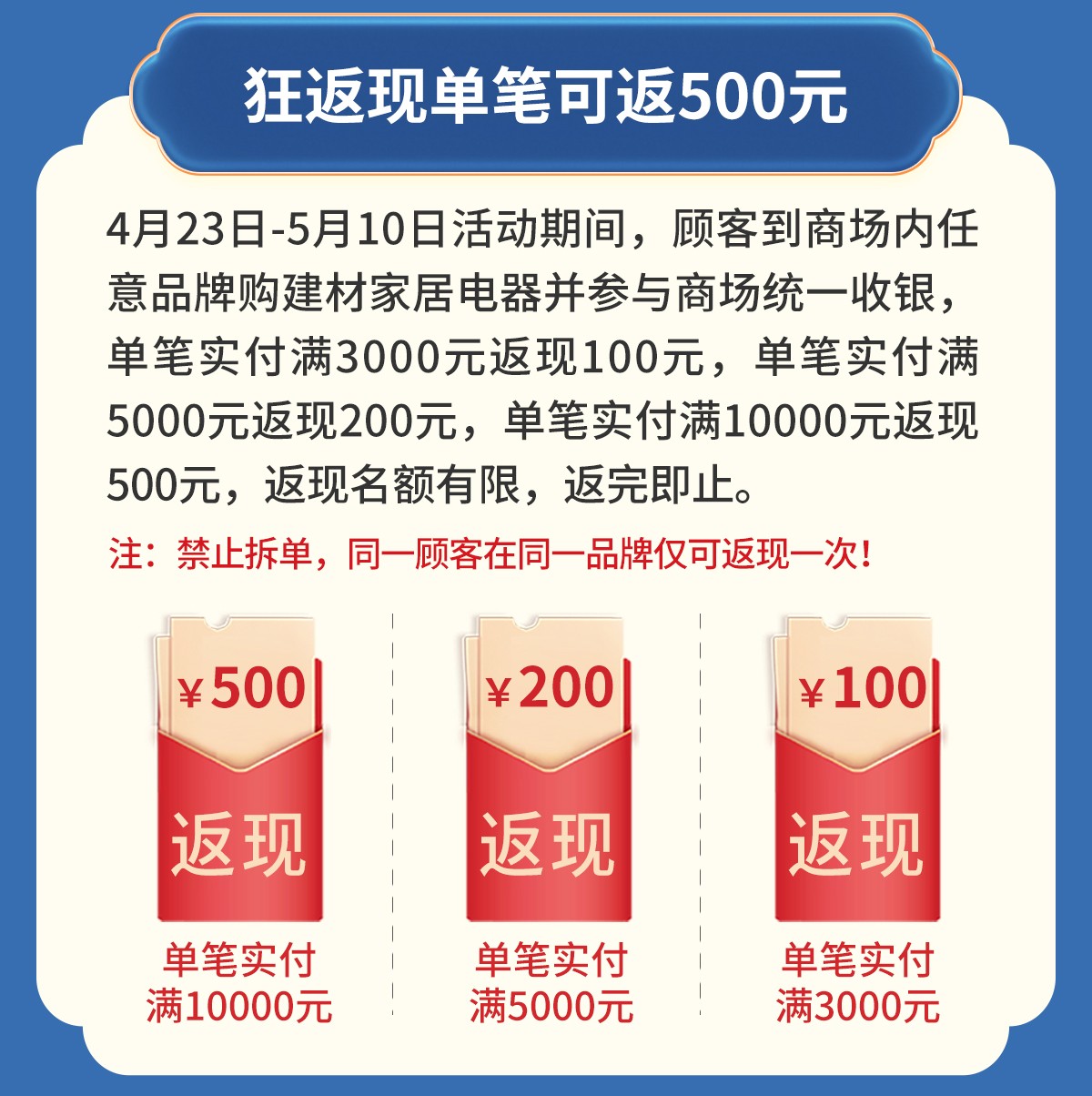 • 4月25日-5月5日青创美居建材家具博览中心 工厂放价 直返现金